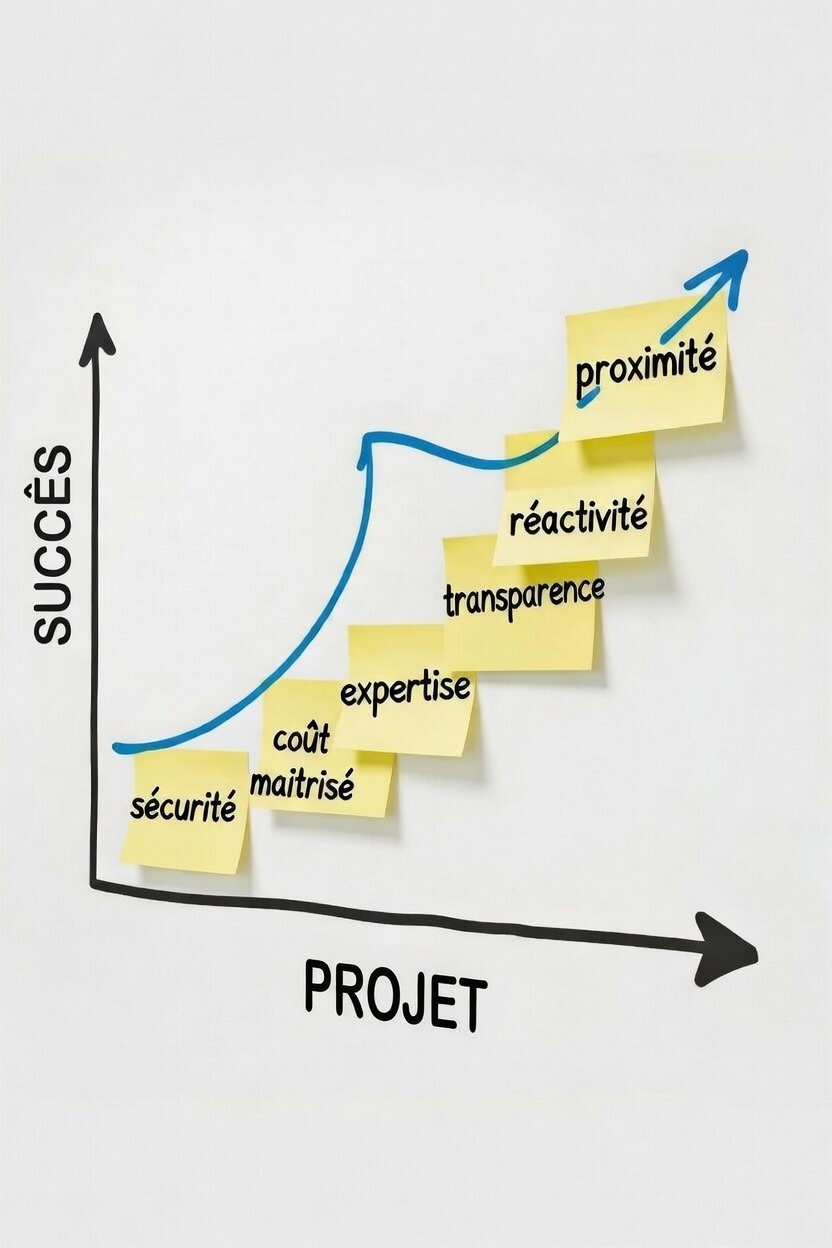 - Transparence : Documentation claire remise après chaque projet. Vous comprenez ce que vous payez